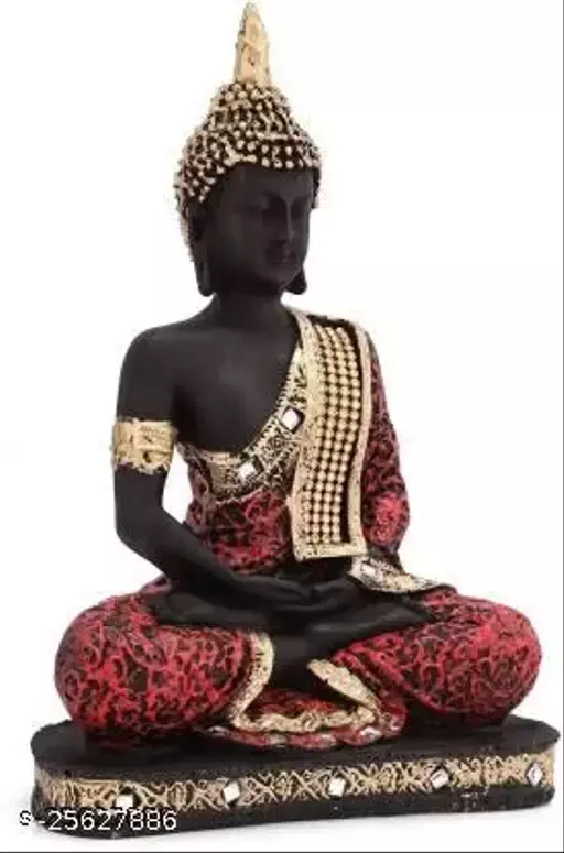 Meditating Buddha Statue for Home Decor Sitting Buddha/Samadhi Buddha Sculpture/Decorative Showpieces for House Office Table Garden Decor (23cm Red & Black)