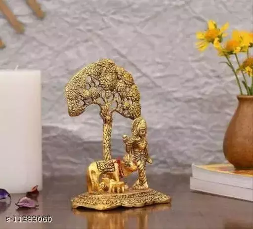 Name : Krishna Cow With Calf Under the Tree Idol For Home,Temple,Office And Gifting Purpose Luck, Happiness and Prosperity Metal Size L-B-H-12x8x17