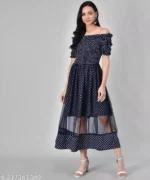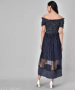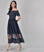 A Women’s Western wear Brand. It is made with finest Crepe fabric which is very soft and feels great to wear.It is Black Maxi polka dot dress with fit and flare elegant look. You experience something new every day with products of vakiria
